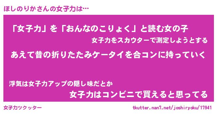 | ファンタジー風あだ名 | 『ホシフェル』『エターナルホシノリカー』 |