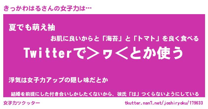 | ヘコむあだ名 | 『きっにー』『牛乳』『きっぷりん』 |