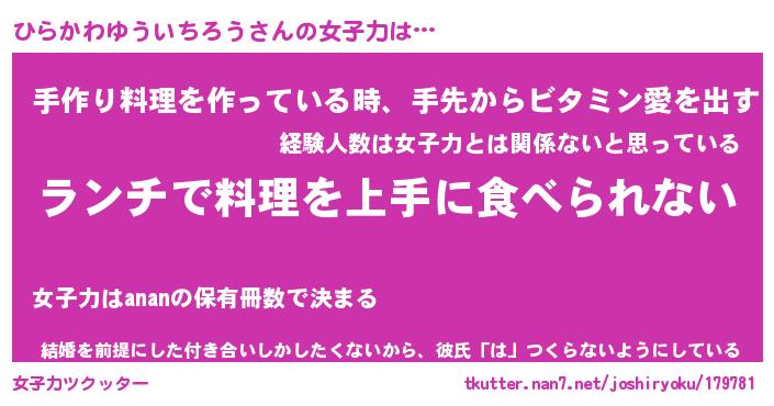 | ヘコむあだ名 | 『ひらもー』『つくし』『ひらっ子』 |