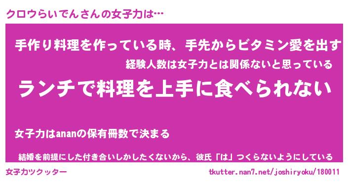 | 恥ずかしいあだ名 | 『プリティークロウらいでん』『クロちん』 |