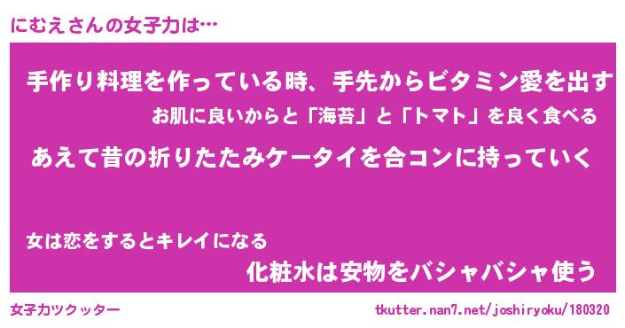 | ヘコむあだ名 | 『にむもー』『つくし』『にむお』 |