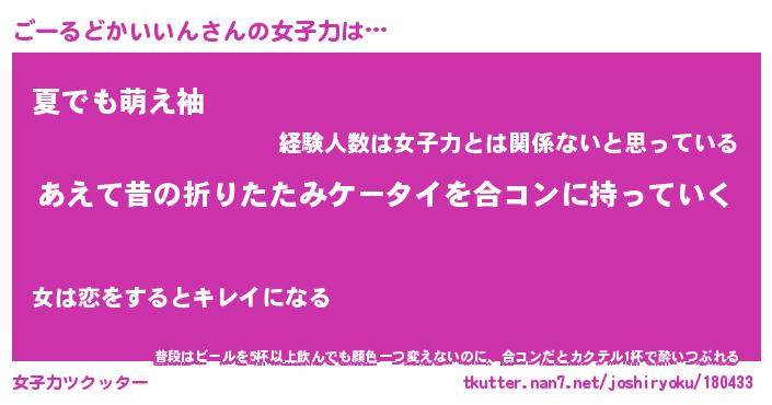 | ヘコむあだ名 | 『ごーっふぃ~』『なまこ酢』 |