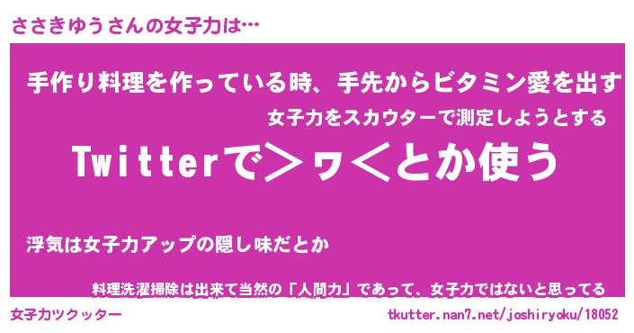 | ファンタジー風あだ名 | 『ササフェル』『エターナルササキユウー』 |