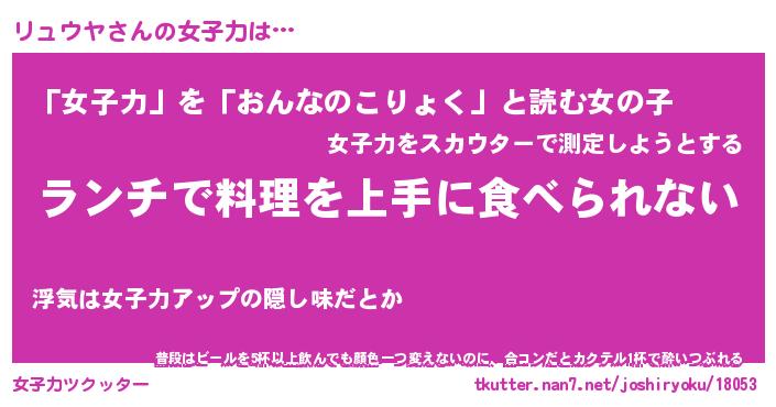 | ヘコむあだ名 | 『リュふぇ~』『レバニラ』『リュお』 |