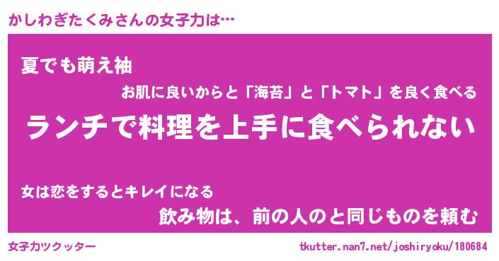 | ヘコむあだ名 | 『かしもー』『なまこ酢』『かし太郎』 |