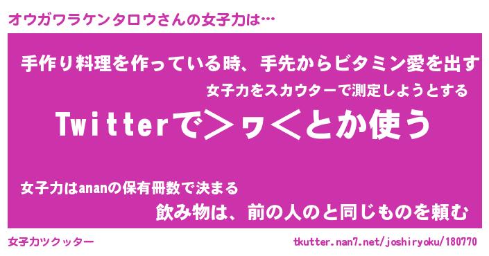 | 胡散臭い通販商品みたいなあだ名 | 『必ず成功する霊験あらたかなお札…その名も「オウガワラケンタロウ」』 |