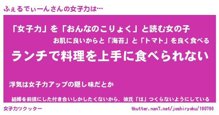 | ヘコむあだ名 | 『ふぇにゅー』『酢こんぶ』『ふぇお』 |