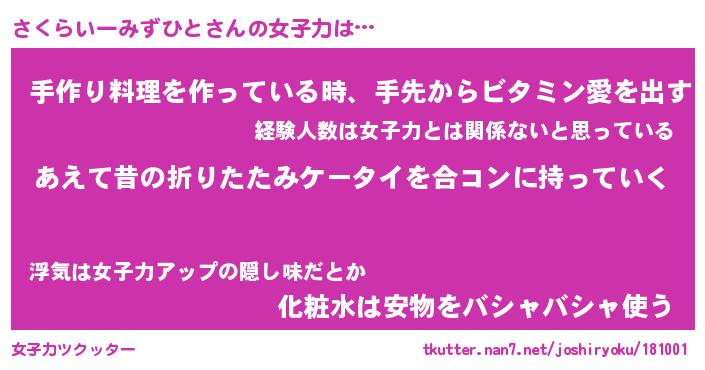 | 胡散臭い通販商品みたいなあだ名 | 『必ず成功するブレスレット…その名も「さくらいーみずひと」』 |