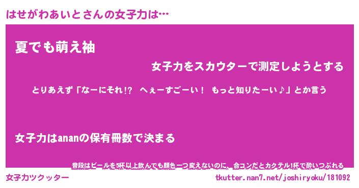 | ヘコむあだ名 | 『はせもー』『なまこ酢』 |