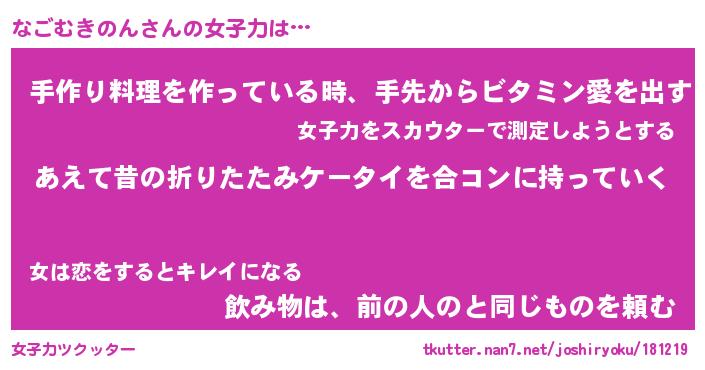 | ヘコむあだ名 | 『なごもー』『つくし』『なごお』 |