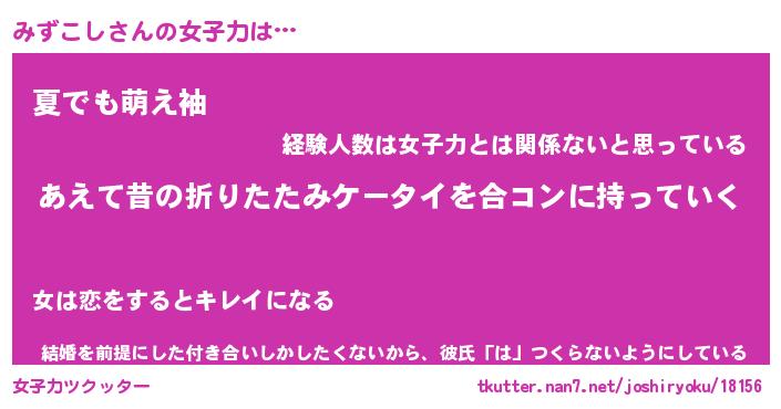 | ヘコむあだ名 | 『みずふぇ~』『なまこ酢』 |