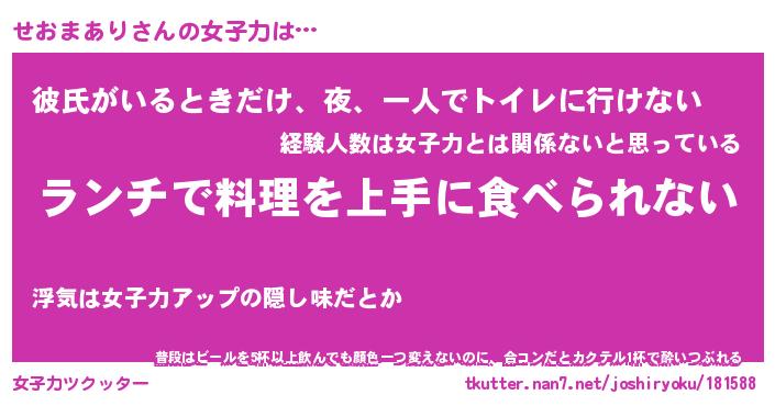 | ヘコむあだ名 | 『せおにゅー』『豆乳』『せお太郎』 |