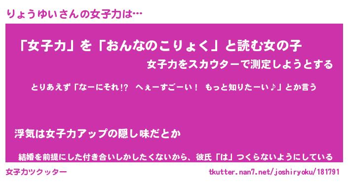 | ファンタジー風あだ名 | 『リョフェル』『エターナルリョウユイー』 |