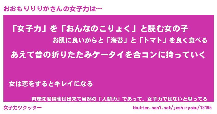 | 胡散臭い通販商品みたいなあだ名 | 『必ず成功する水晶球…その名も「おおもりりりか」』 |