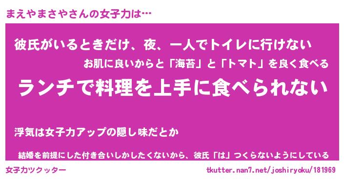 | 恥ずかしいあだ名 | 『プリティーまえやまさや』『まえっちょ』 |