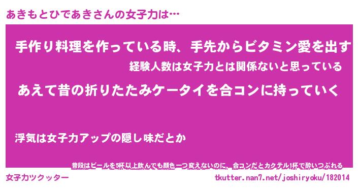 | ヘコむあだ名 | 『あきにゅー』『つくし』『あき太郎』 |