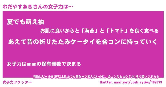 | 肩書あだ名 | 『わだやすあき御曹司』 |