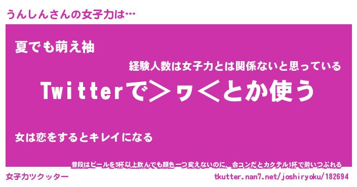 | ファンタジー風あだ名 | 『ウンフェル』『エターナルウンシンー』 |