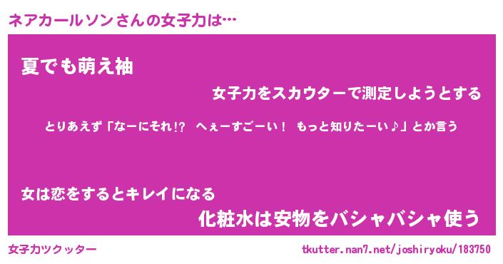 | 恥ずかしいあだ名 | 『プリティーネアカールソン』『ネアちん』 |