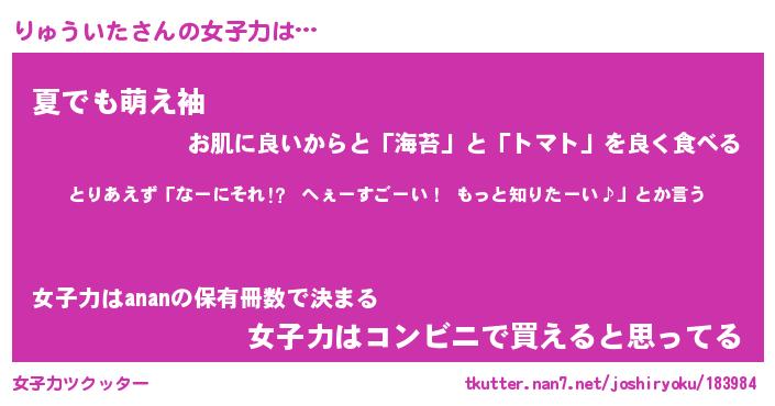 | ヘコむあだ名 | 『りゅっふぃ~』『なまこ酢』 |
