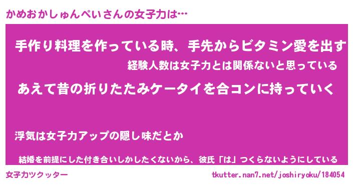 | ヘコむあだ名 | 『かめふぇ~』『つくし』『かめ太郎』 |