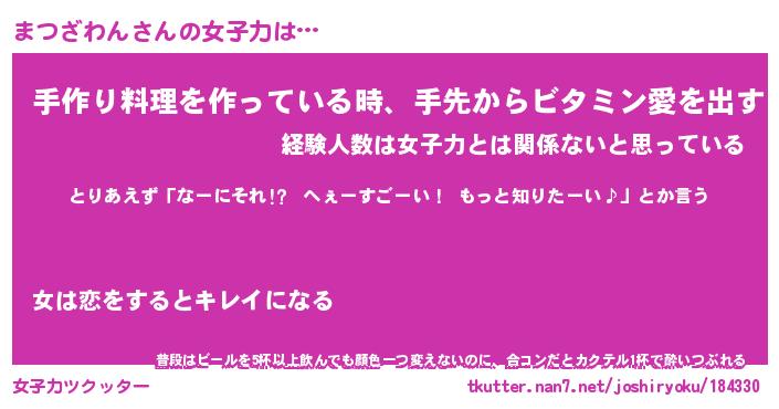 | 恥ずかしいあだ名 | 『プリティーまつざわん』『まつっちょ』 |