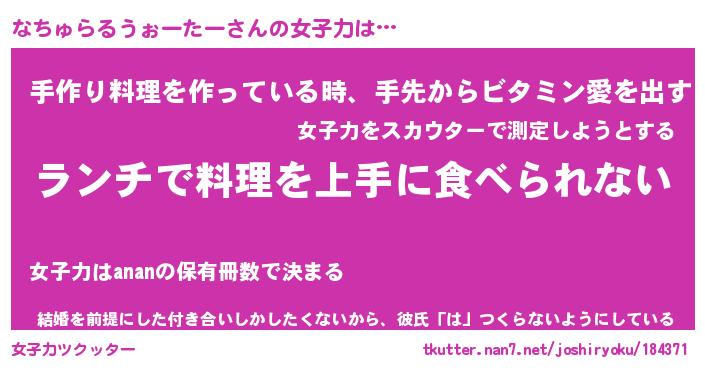 | ヘコむあだ名 | 『なちにー』『つくし』『なちっ子』 |
