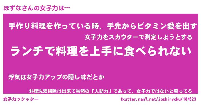| ヘコむあだ名 | 『ほずにゅー』『つくし』『ほず太郎』 |