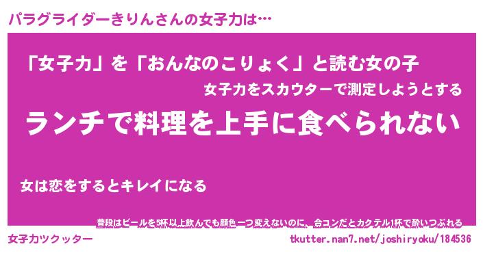 | ヒーロー風カッコイイあだ名 | 『スーパーパラグライダーキリン』 |