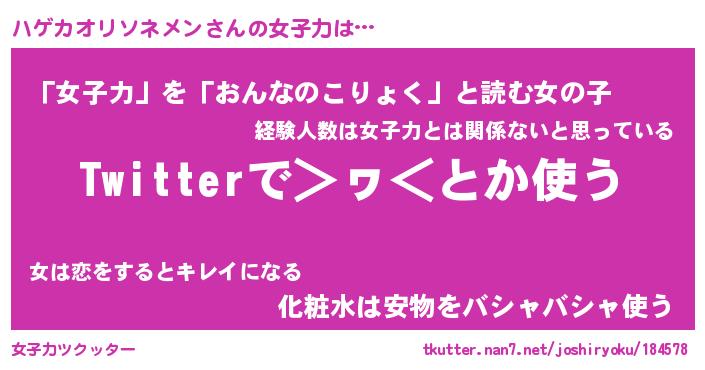 | ヘコむあだ名 | 『ハゲにー』『つくし』『ハゲ太郎』 |