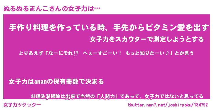 | ツイッター | ぬるぬるまんこさんのツイッターID『dendenmushi_idle』 |