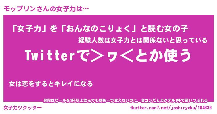 | ファンタジー風あだ名 | 『モッフェル』『エターナルモップリンー』 |
