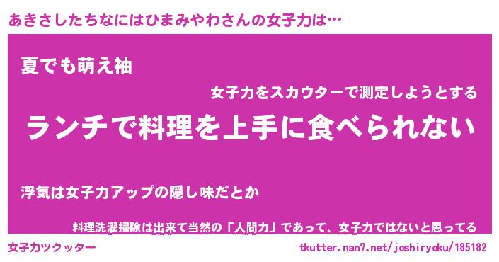 | ヘコむあだ名 | 『あきにー』『なまこ酢』『あきっ子』 |
