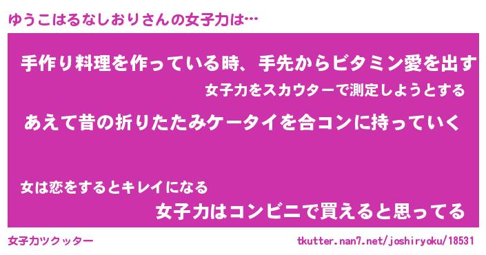 | 胡散臭い通販商品みたいなあだ名 | 『必ず成功するブレスレット…その名も「ゆうこはるなしおり」』 |