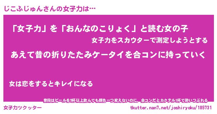 | 女子向けラノベタイトル風あだ名 | 『(仮)じこふじゅんのやんごとなき事情』 |