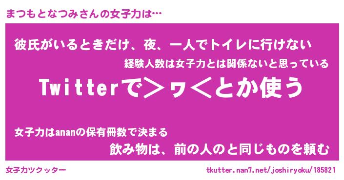| 男性向けラノベタイトル風あだ名 | 『まつもとなつみの憂鬱』 |