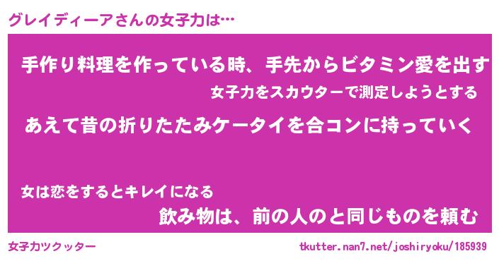 | 恥ずかしいあだ名 | 『プリティーグレイディーア』『グレちん』 |