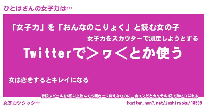| 男性向けラノベタイトル風あだ名 | 『ひとはの憂鬱』 |