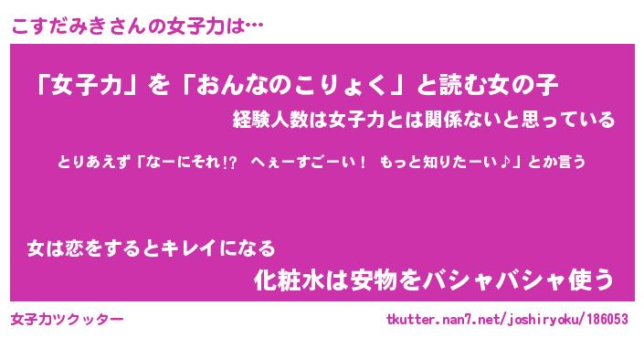 | 恥ずかしいあだ名 | 『プリティーこすだみき』『こすっちょ』 |