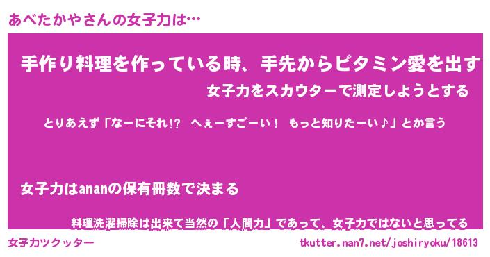 | ファンタジー風あだ名 | 『アベフェル』『エターナルアベタカヤー』 |