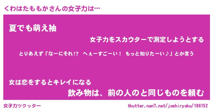 | 恥ずかしいあだ名 | 『プリティーくわはたももか』『くわちん』 |