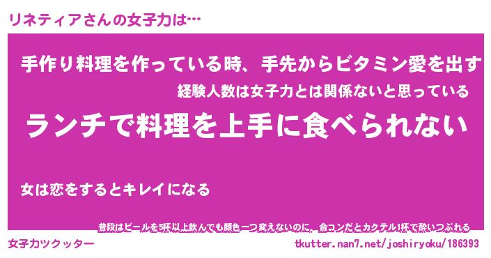 | 恥ずかしいあだ名 | 『プリティーリネティア』『リネっちょ』 |