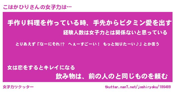 | 恥ずかしいあだ名 | 『プリティーこはかひり』『こはっちょ』 |