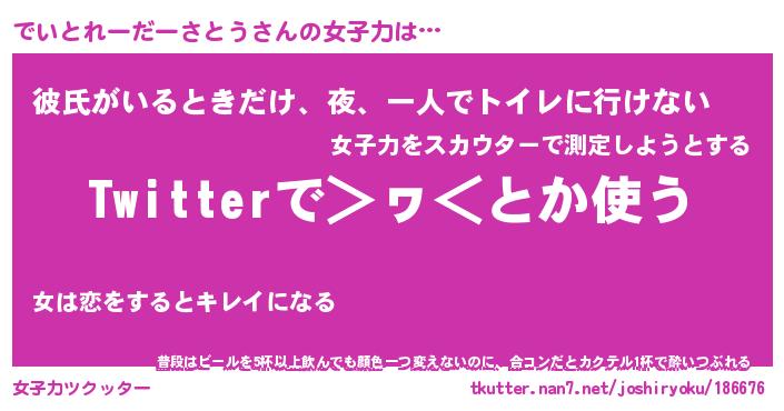 | ヘコむあだ名 | 『でいもー』『豆乳』『でいっぺ』 |