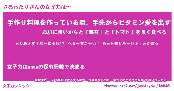| ヘコむあだ名 | 『さるにゅー』『豆乳』『さるを』 |