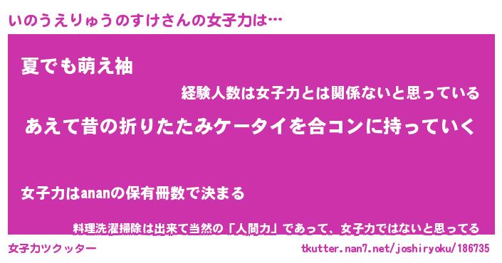 | 女子向けラノベタイトル風あだ名 | 『(仮)いのうえりゅうのすけのやんごとなき事情』 |
