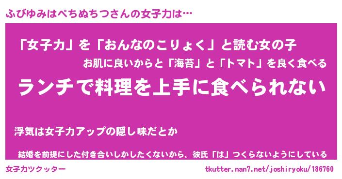 | 料理風あだ名 | 『ネギたっぷりふびゆみはぺちぬちつの南蛮漬け』 |