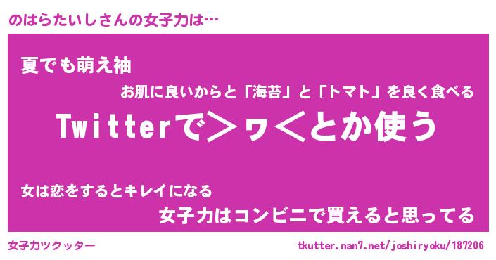 | ヘコむあだ名 | 『のはふぇ~』『なまこ酢』『のはを』 |