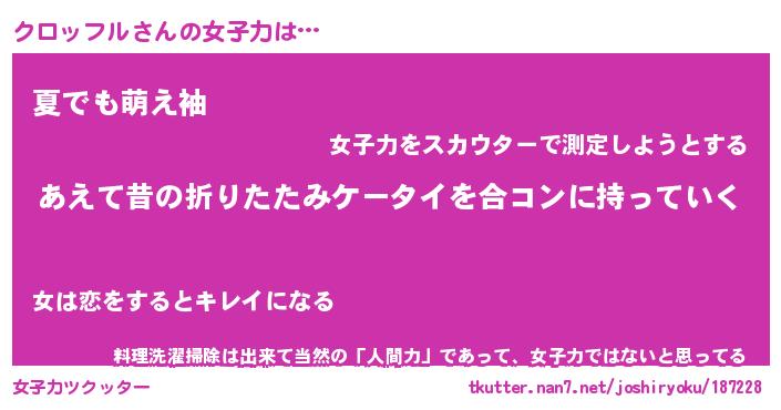 | ヘコむあだ名 | 『クロふぇ~』『酢こんぶ』 |