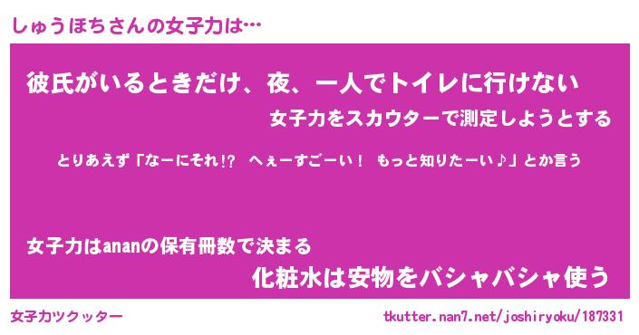 | ヘコむあだ名 | 『しゅっふぃ~』『つくし』 |